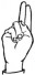 На ћирилици написано БУДИМИР РАЛОВАЦ састоји се из 14 слова [?]. Исписано ћириличном једноручном азбуком за глувонеме: